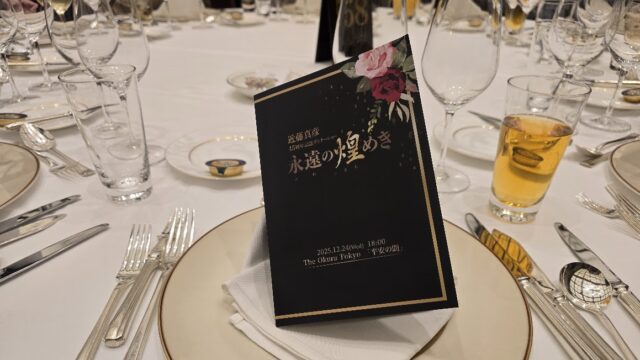 ディナーショー 近藤真彦:45周年記念ディナーショー永遠の煌めき 2025年12月26日 ikuyo VERYまっち! 2025年12月24日(水)18時~ The Okura Tokyo「平安の間」 今年もマッチのディナーショーに行ってきました! …